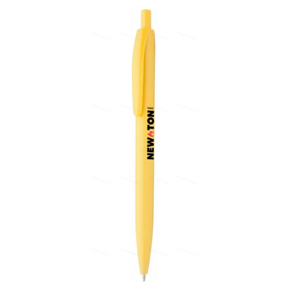 Цветная пластиковая шариковая ручка с черным стержнем.
