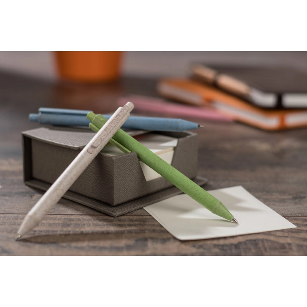 Ручка REVI создана для тех, кто стремится сократить количество пластиковых отходов. Вместо традиционного пластика используется материал, изготовленный из 40% натуральной соломы. Классическая и простая форма делает её универсальным аксессуаром. Автоматическая ручка. Синяя вставка типа X20.