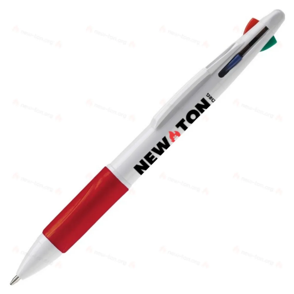 Ручка 4-в-1. Белая шариковая ручка твердого цвета с цветной ручкой и четырьмя цветами письма на выбор: синим, красным, черным и зеленым.