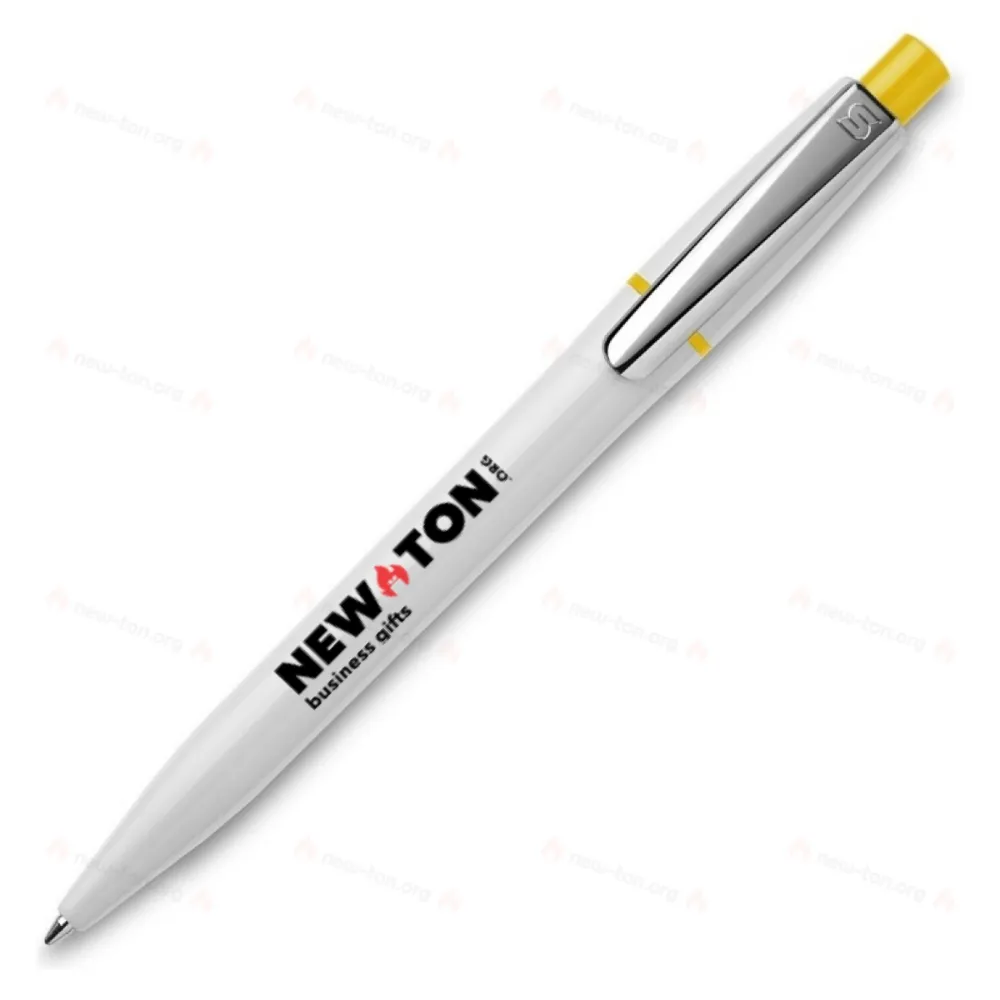 Захватывающая шариковая ручка твердого цвета с цветным кольцом, толкателем и хромированным зажимом. С длительным наполнением. Синее письмо. От 5.500 штук возможны собственные цветовые комбинации. Спрашивайте о возможностях.