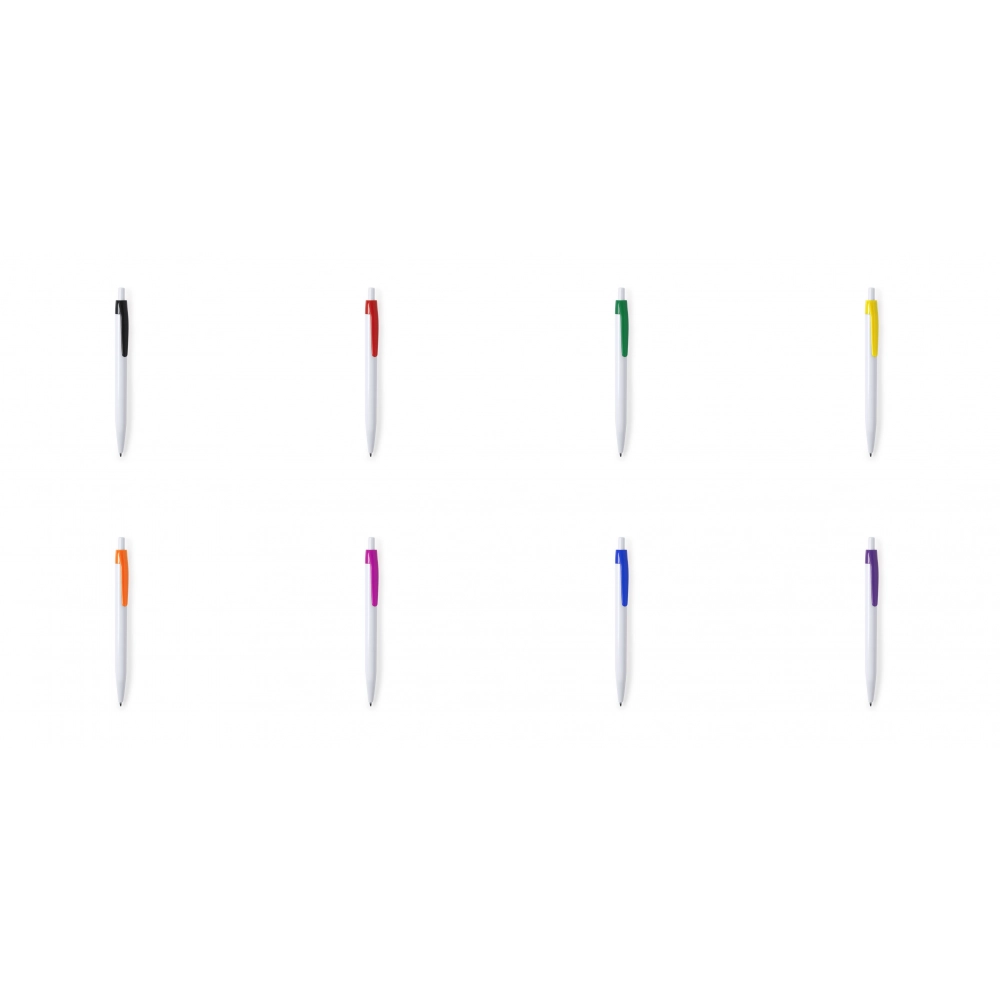 Особенности Шариковая ручка с нажимным механизмом в привлекательном двухцветном дизайне. Корпус в белом цвете и зажим в широкой цветовой гамме. Широкая область печати и заправка синими чернилами.