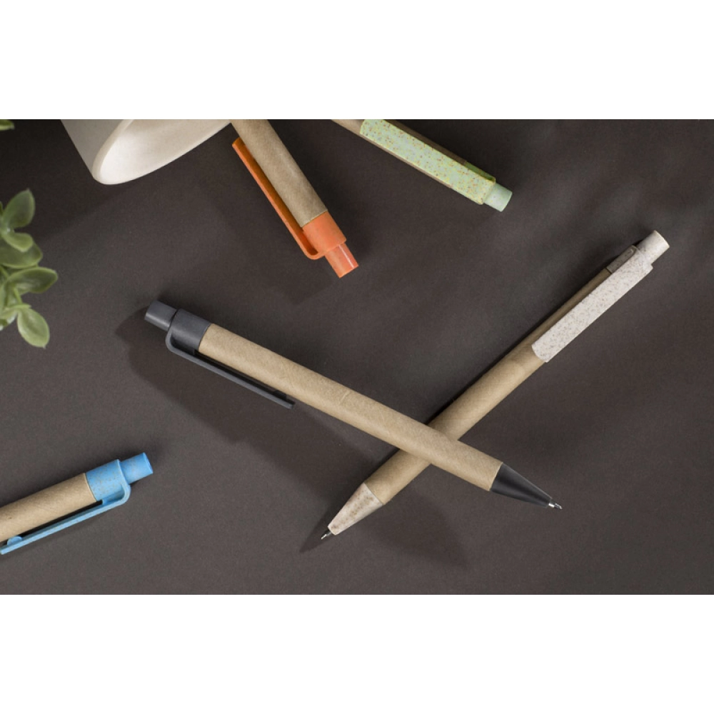 Шариковая ручка TIKO создана с целью повторного использования сырья. Корпус изготовлен из переработанной бумаги, а наконечники сделаны из пластика с добавлением натуральной соломы, что снижает количество пластика, необходимого для производства. Простой, вне времени дизайн. Шариковая ручка. Стержень типа X20 с синими чернилами.