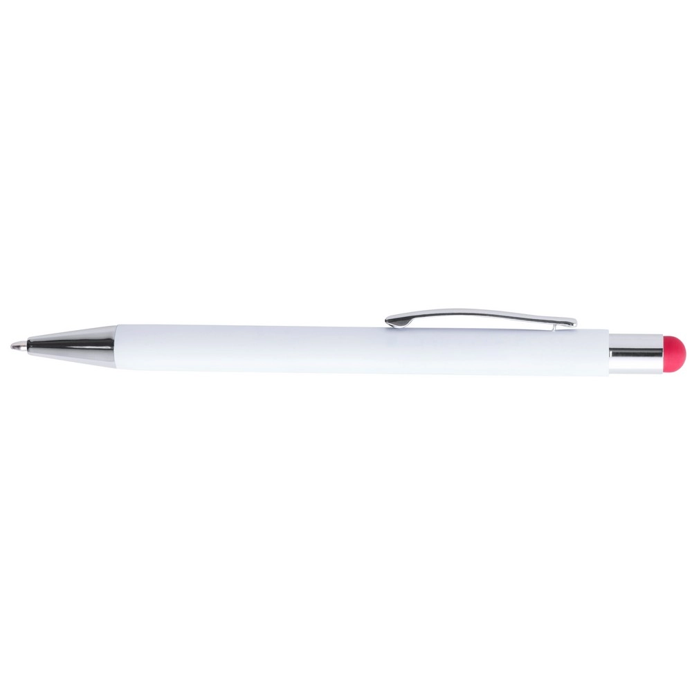 Шариковая ручка, сенсорный стилус, белый корпус, матовая отделка, зеркальная поверхность после гравировки похожа на цвет резинового наконечника.