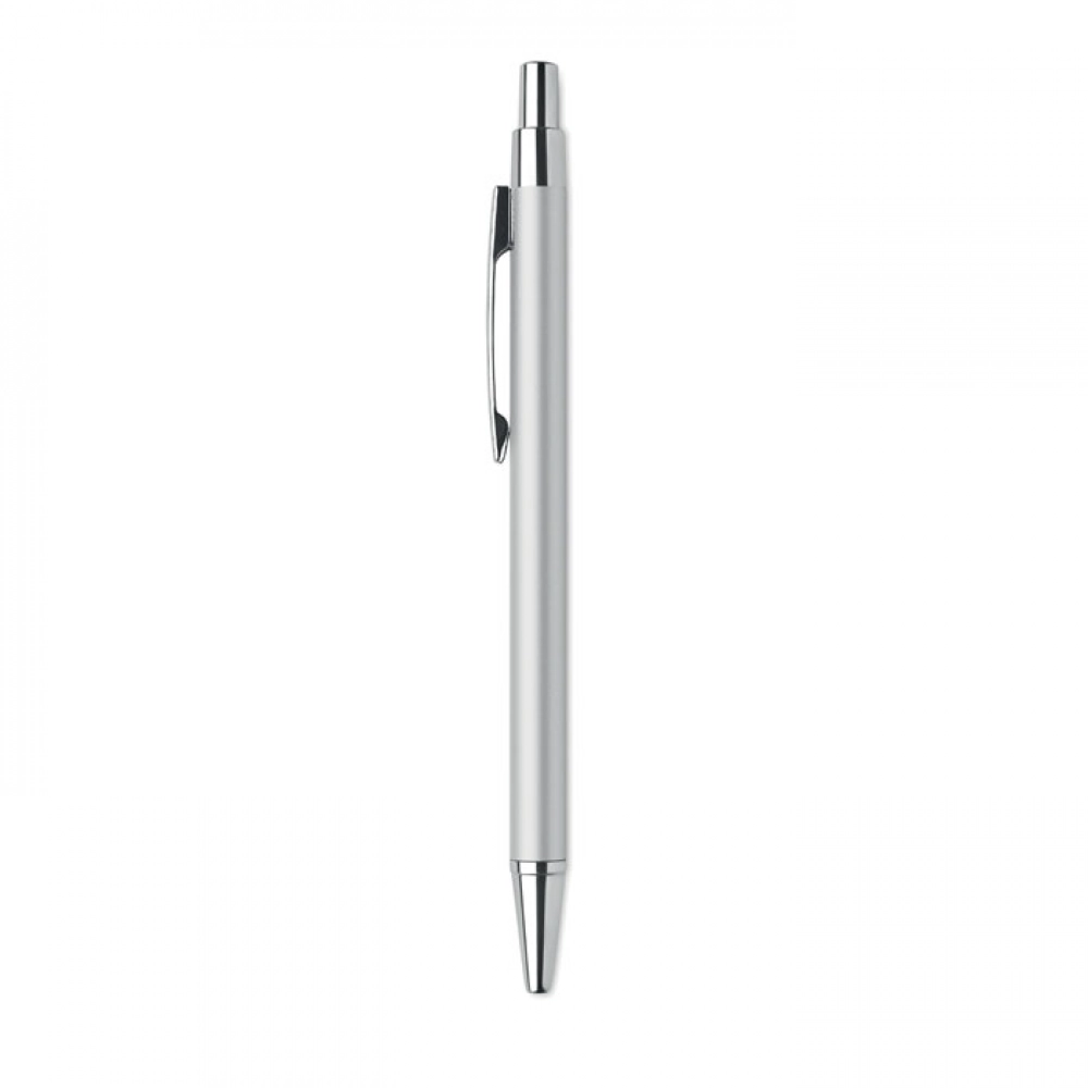 Кнопочная шариковая ручка из переработанного алюминия. Синие чернила.