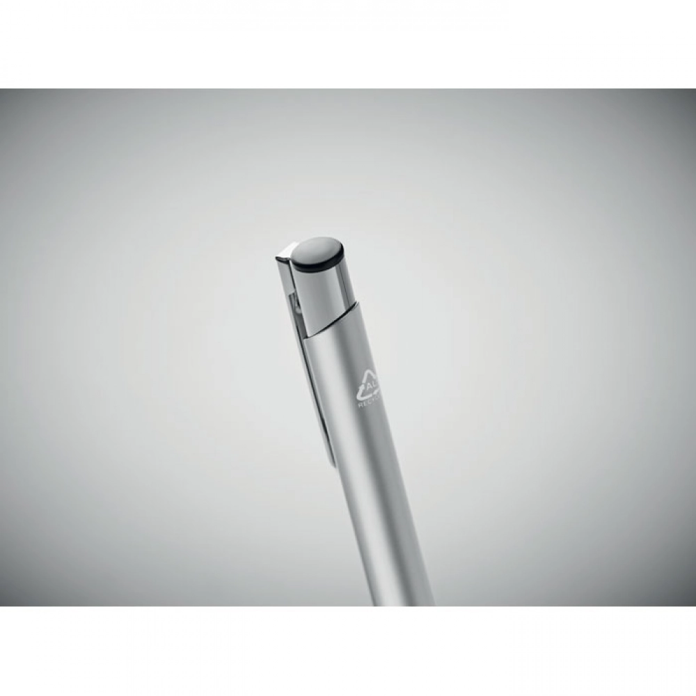Кнопочная шариковая ручка из переработанного алюминия. Синие чернила.