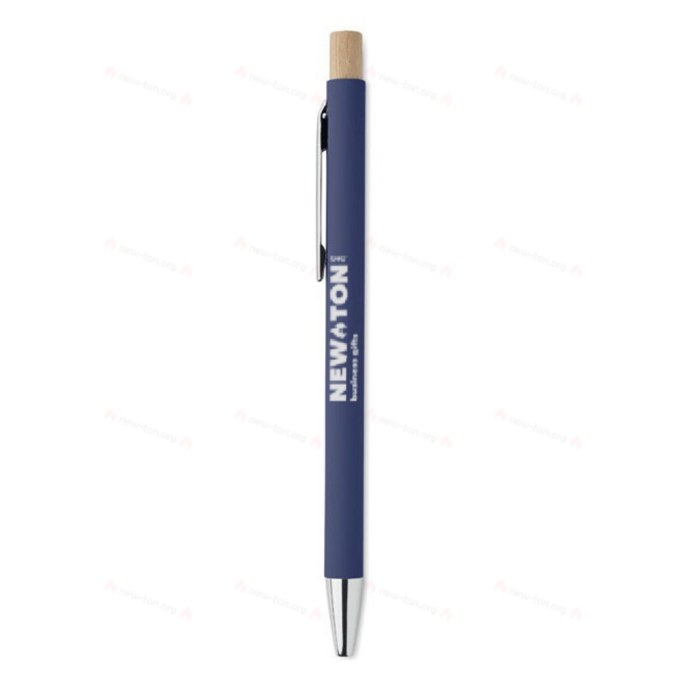 Шариковая ручка из переработанного алюминия с бамбуковой кнопкой. Серебристый наконечник и клип. Синие чернила.