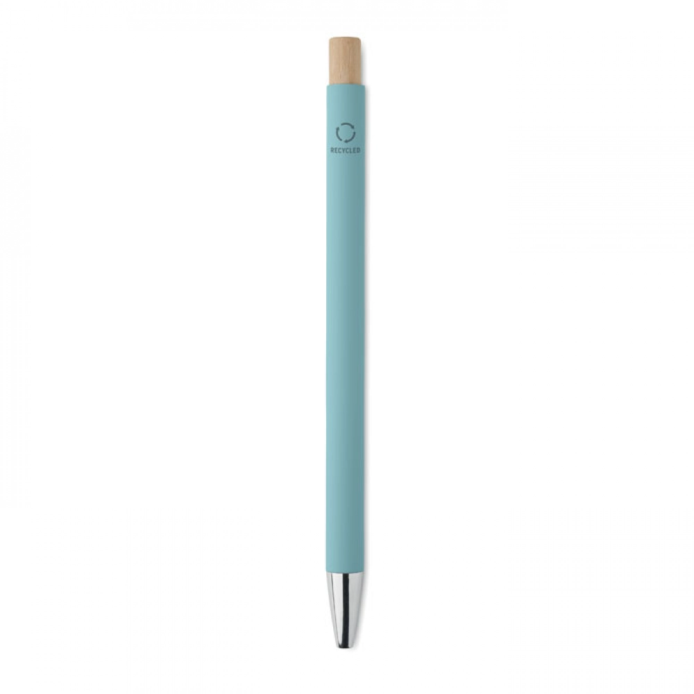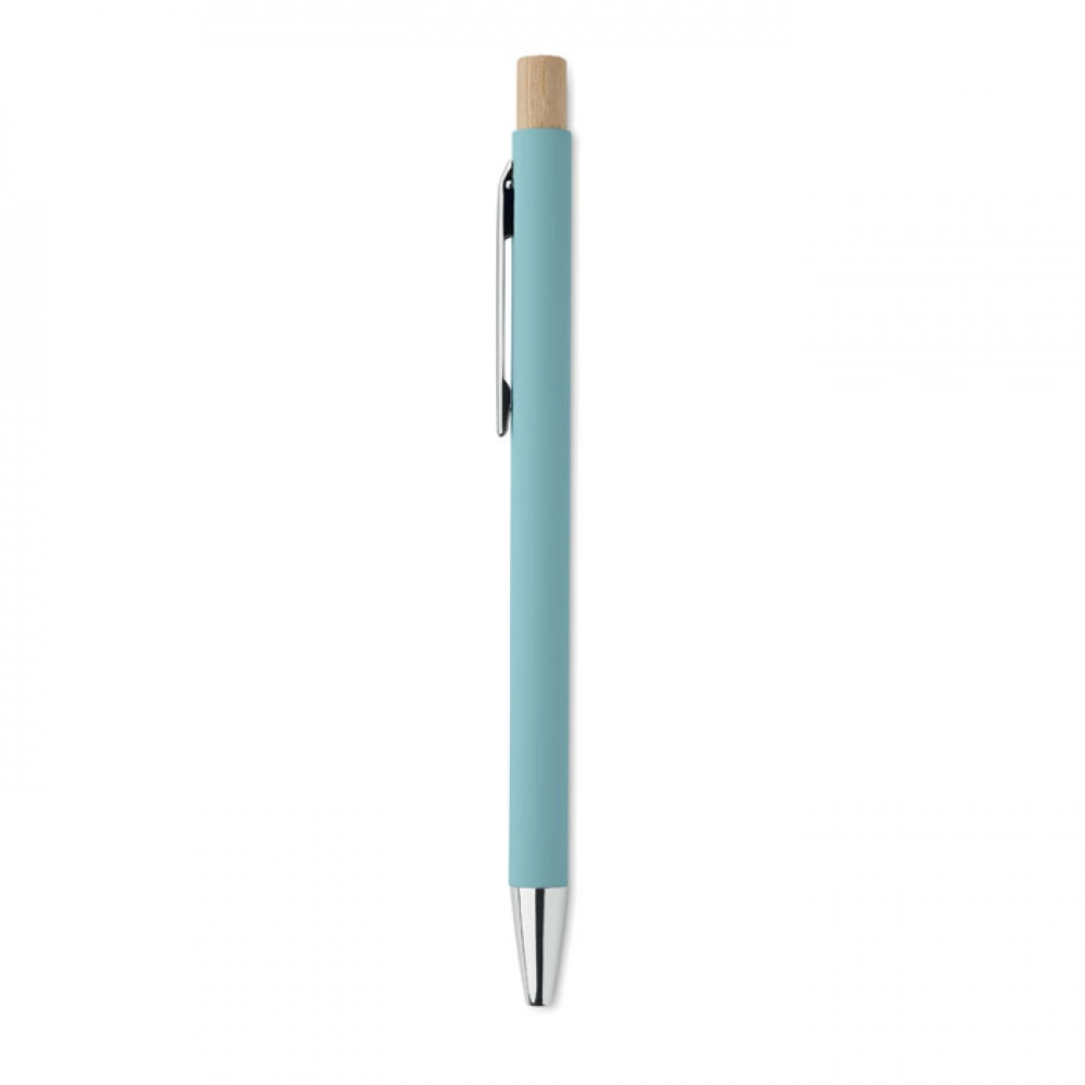 Шариковая ручка из переработанного алюминия с бамбуковой кнопкой. Серебристый наконечник и клип. Синие чернила.