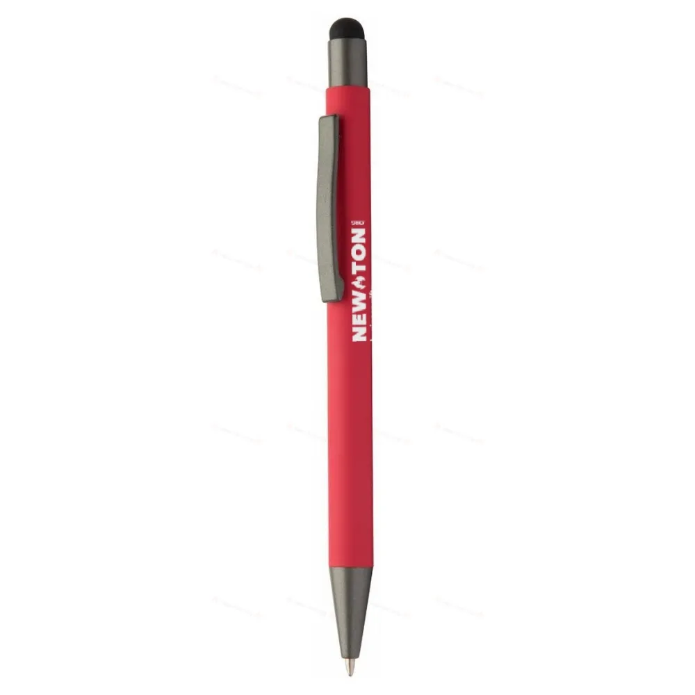 Алюминиевая шариковая ручка и ручка для сенсорного экрана с прорезиненным покрытием. С синим стержнем.