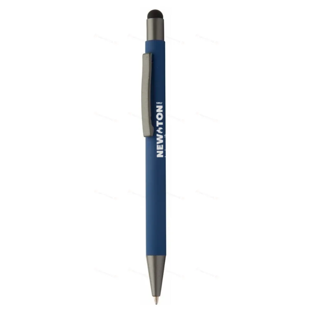 Алюминиевая шариковая ручка и ручка для сенсорного экрана с прорезиненным покрытием. С синим стержнем.