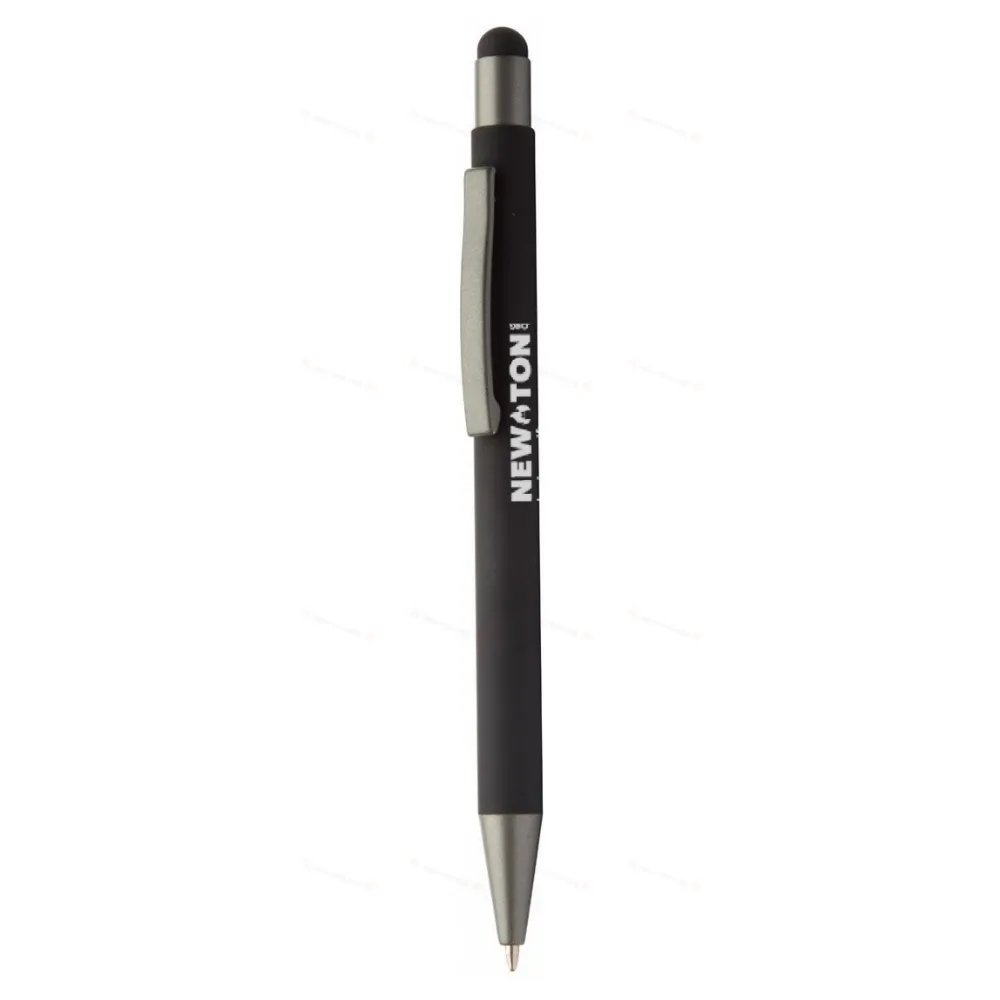 Алюминиевая шариковая ручка и ручка для сенсорного экрана с прорезиненным покрытием. С синим стержнем.
