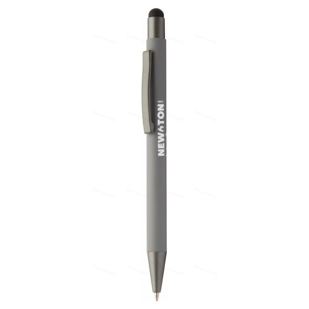 Алюминиевая шариковая ручка и ручка для сенсорного экрана с прорезиненным покрытием. С синим стержнем.