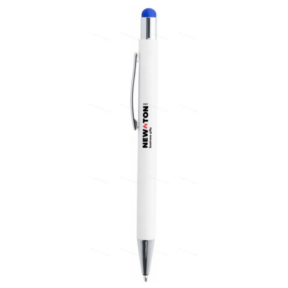 Алюминиевая шариковая ручка и ручка для сенсорного экрана с синим стержнем. Со специальным покрытием для зеркальной гравировки под цвет стилуса.