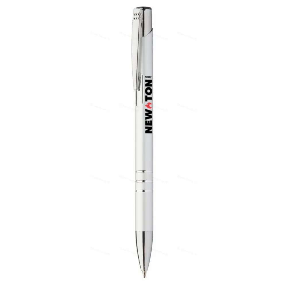 Алюминиевая шариковая ручка с черным стержнем.