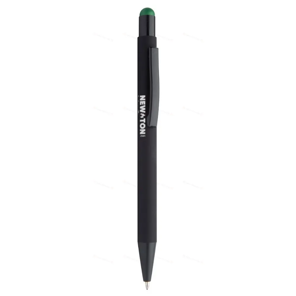 Алюминиевая шариковая ручка и ручка для сенсорного экрана с прорезиненным покрытием. Со специальным покрытием для зеркальной гравировки под цвет стилуса. С синим стержнем.