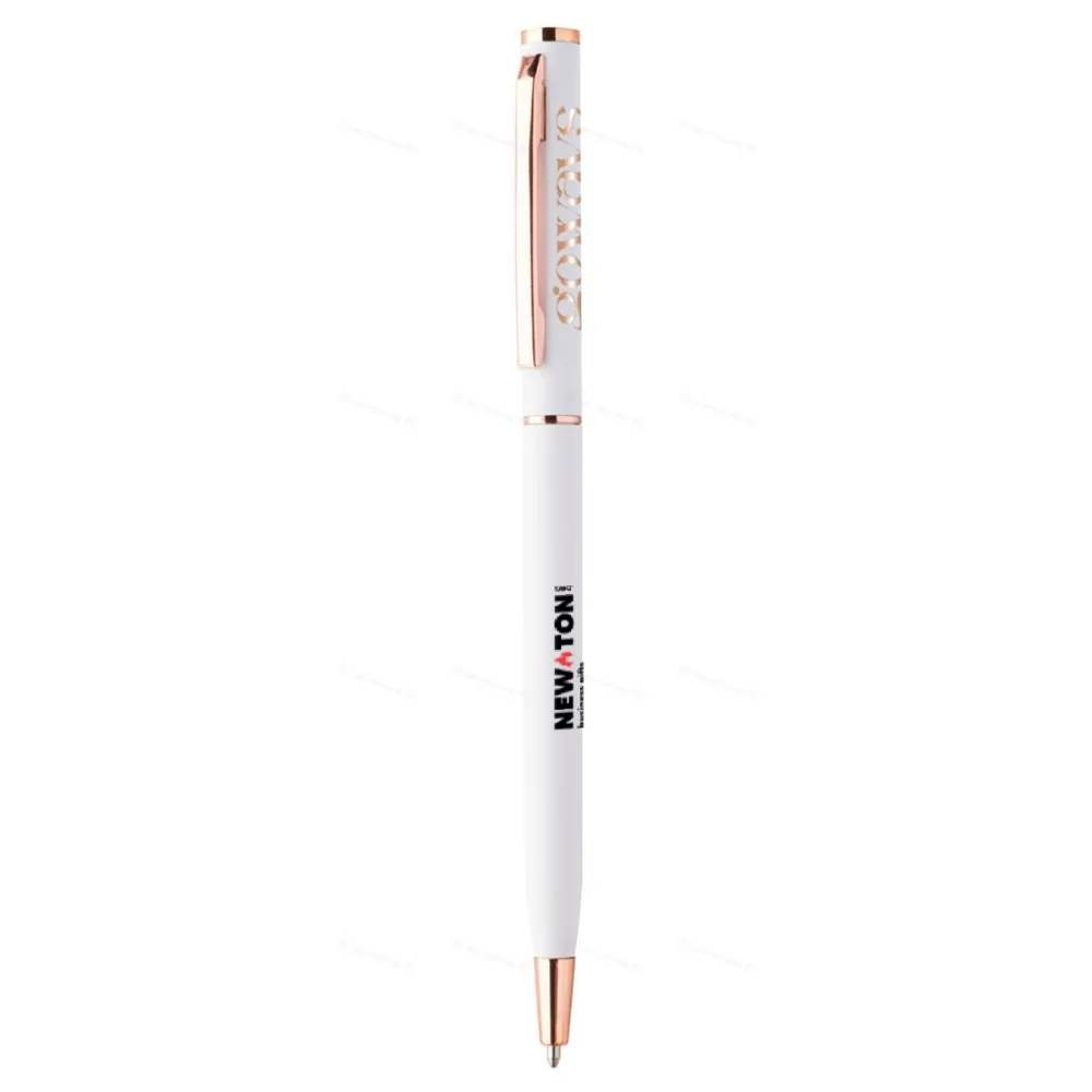Переработанная алюминиевая шариковая ручка с резиновым покрытием и деталями из розового золота. Специальное покрытие для зеркальной лазерной гравировки в цвете розового золота. С синим заправочным стержнем.