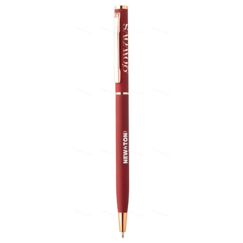 Переработанная алюминиевая шариковая ручка с резиновым покрытием и деталями из розового золота. Специальное покрытие для зеркальной лазерной гравировки в цвете розового золота. С синим заправочным стержнем.