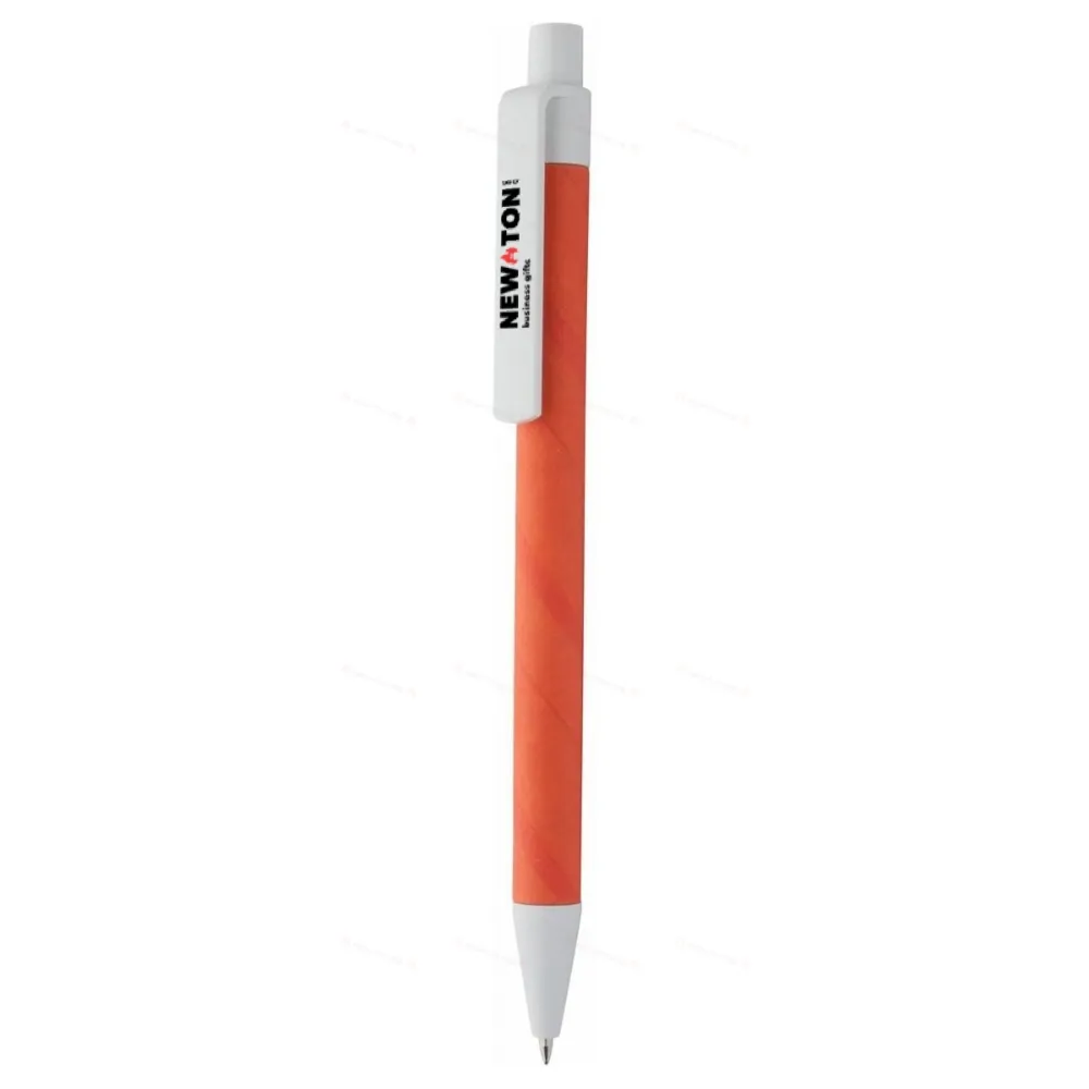 Шариковая ручка из переработанной бумаги с белыми пластиковыми деталями. С синим стержнем.