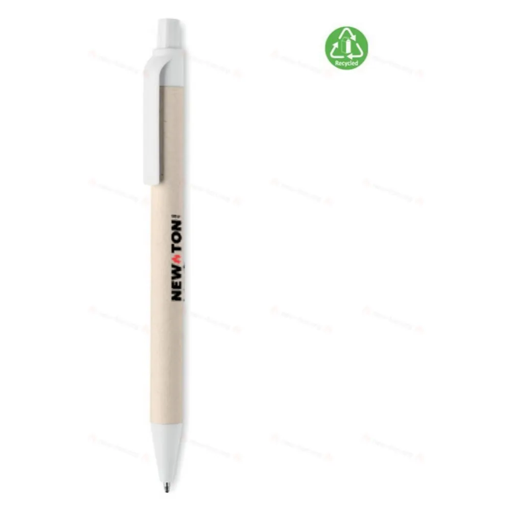 Кнопочная шариковая ручка с корпусом из переработанного картона и деталями из 100% биоразлагаемого материала на основе кукурузы. Синие чернила.