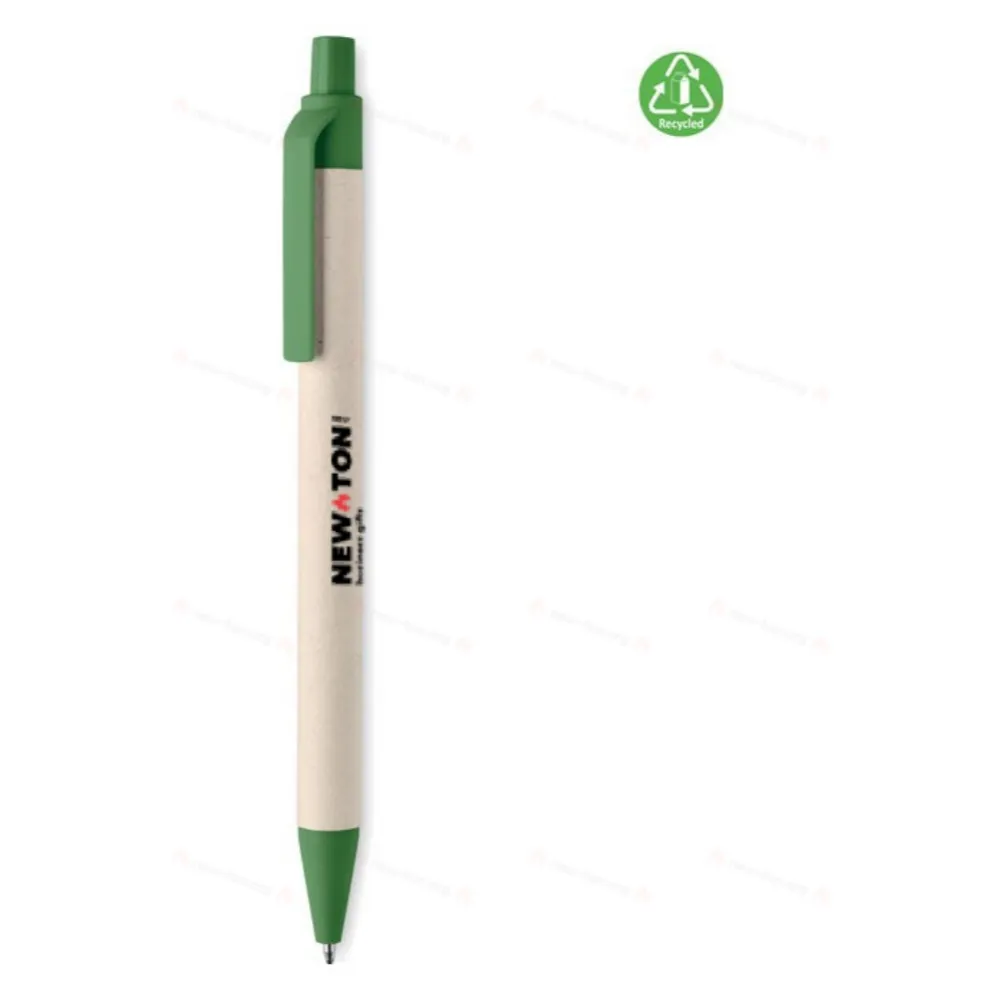 Кнопочная шариковая ручка с корпусом из переработанного картона и деталями из 100% биоразлагаемого материала на основе кукурузы. Синие чернила.