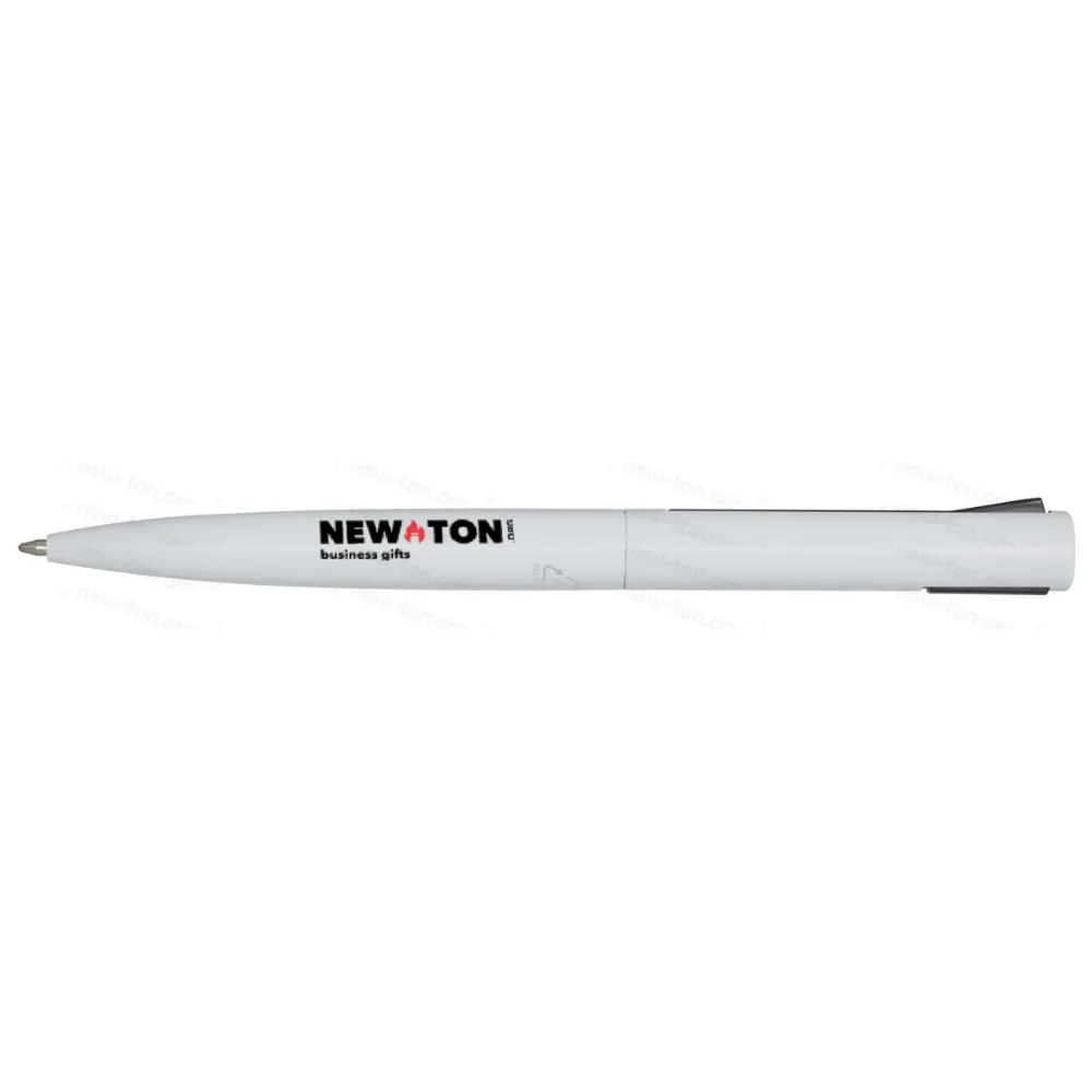 Шариковая ручка с верхней частью корпуса из переработанного пластика и нижней частью из переработанного алюминия. Клип изготовлен из железа. Цвет чернил: синий. Длина письма: 1000 метров. Размер наконечника: 1,0 мм.