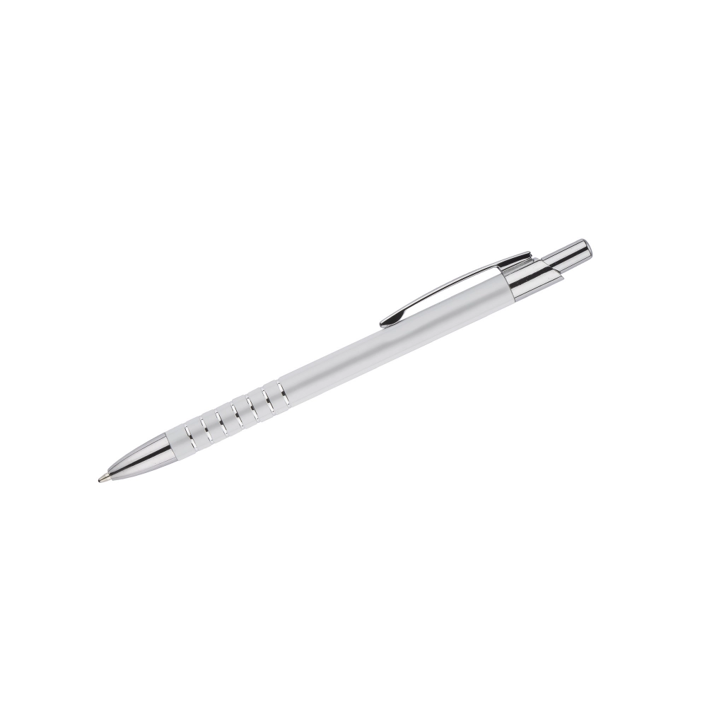 Простая шариковая ручка из алюминия, украшенная широкими кольцами. Логотип будет нанесен гравировкой.