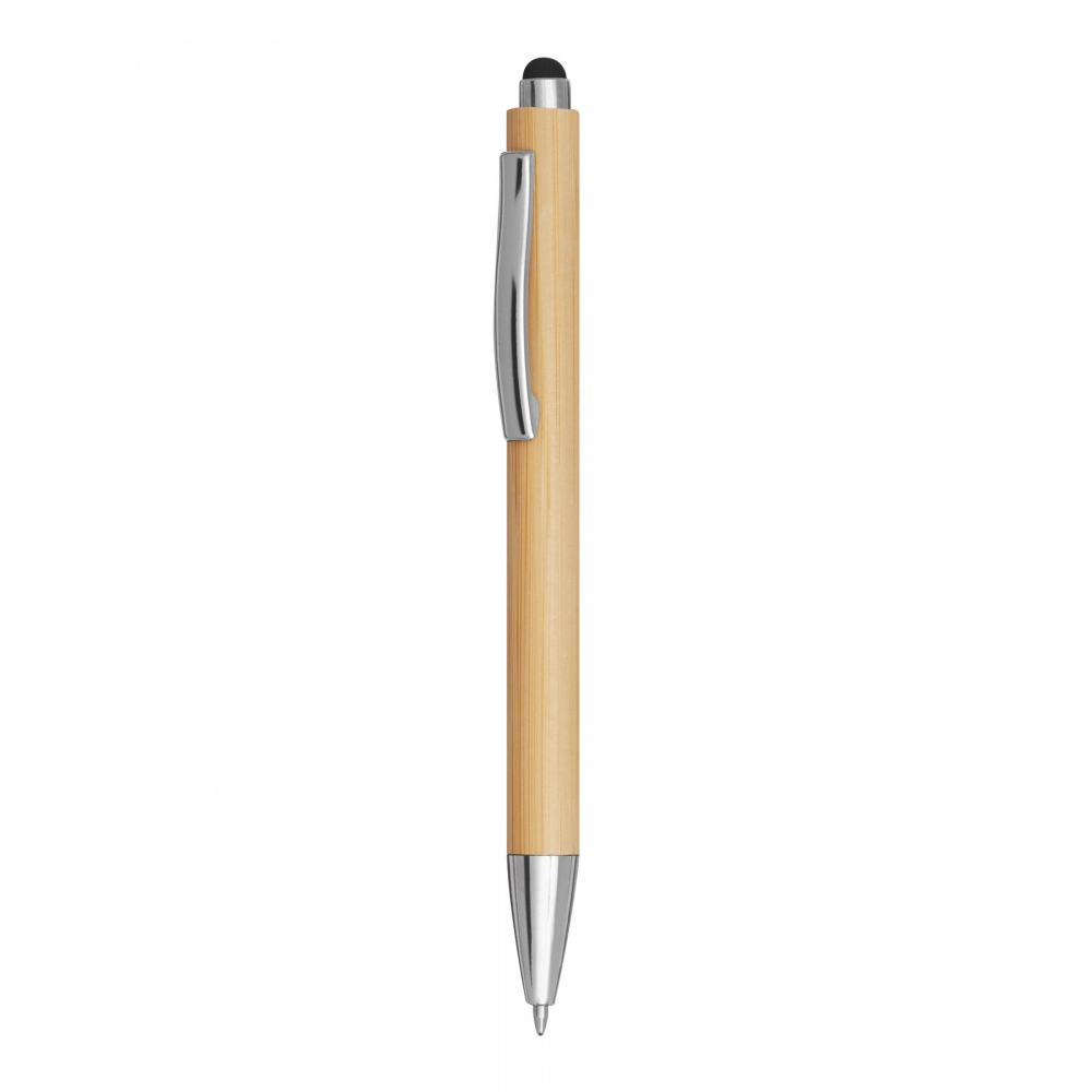 Шариковая ручка TOUCHY: снаружи покрыта бамбуком, нажимной механизм, цветной сенсорный наконечник для работы со смартфонами и планшетами, синие чернила