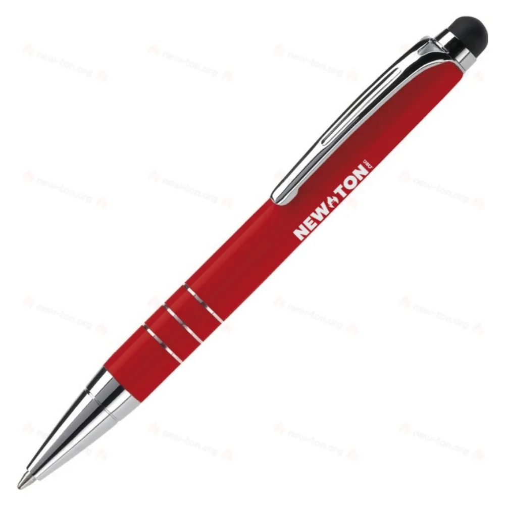 Маленькая алюминиевая ручка с сенсорным экраном сверху. Ручка имеет поворотный механизм.