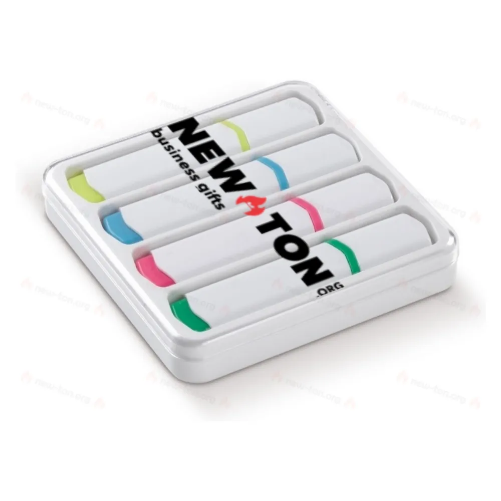 Набор из четырех основных маркеров в полезной пластиковой коробке с прозрачной крышкой. Маркеры имеют уникальный дизайн DeskPoint. Цветные детали маркера показывают цвета написания.