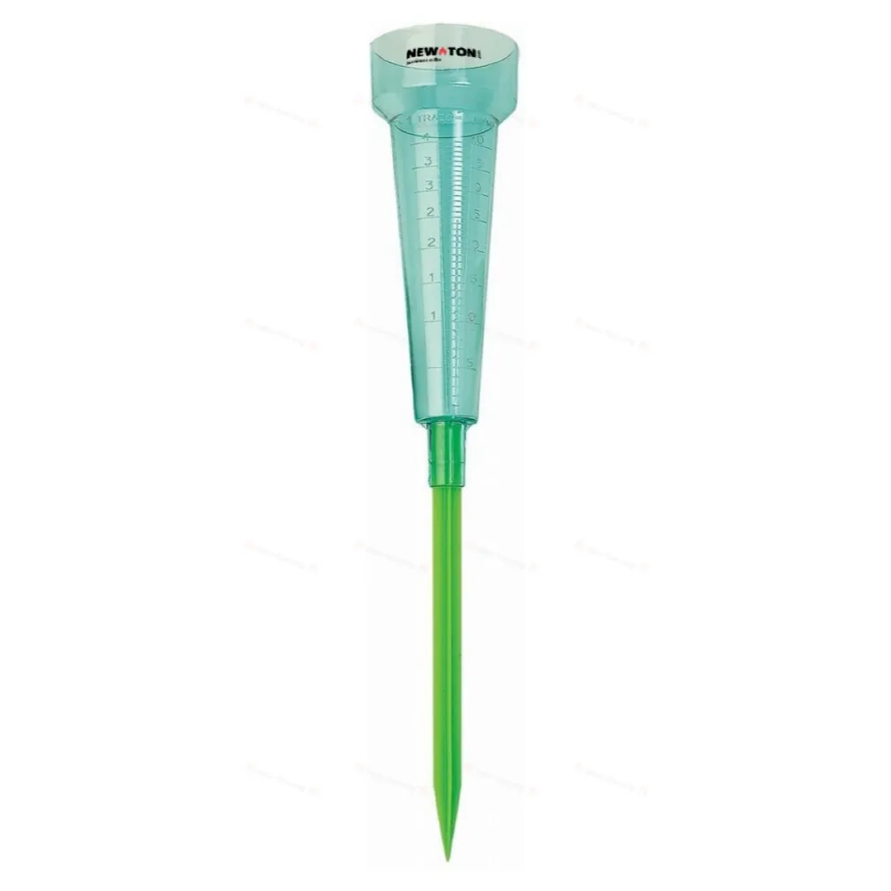 Пластиковый дождевой измеритель с прозрачным корпусом и прочным крепежным штырем. Шкала: 1 линия = 1 л/м². Вместимость: 40 л/м².