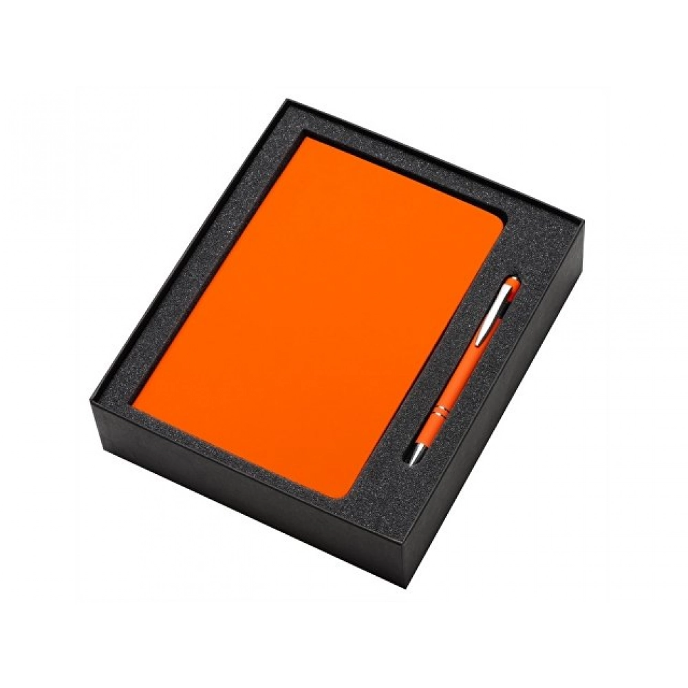 ручка - металл c покрытием soft-touch, блокнот - искусственная кожа, коробка - кашированный картон