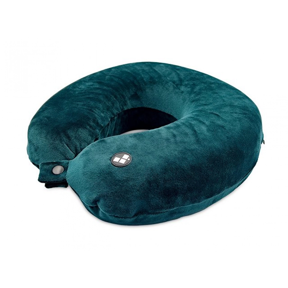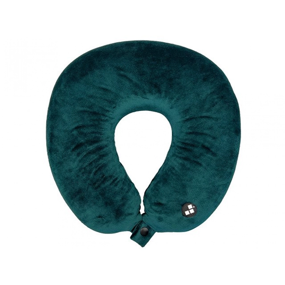 Удобная кнопочная застёжка надёжно фиксирует подушку на шее, а в комплект входит прочный круглый чехол на молнии — для компактного хранения и перевозки.