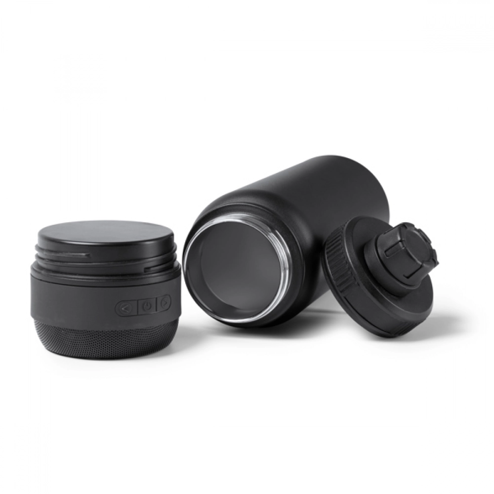 Двухслойная термос-бутылка из нержавеющей стали 304 с съемным динамиком мощностью 3 Вт. Крышка с ручкой для переноски. Объем: 650 мл. В комплекте кабель типа C. Представлено в экологически дизайнерской коробке.
