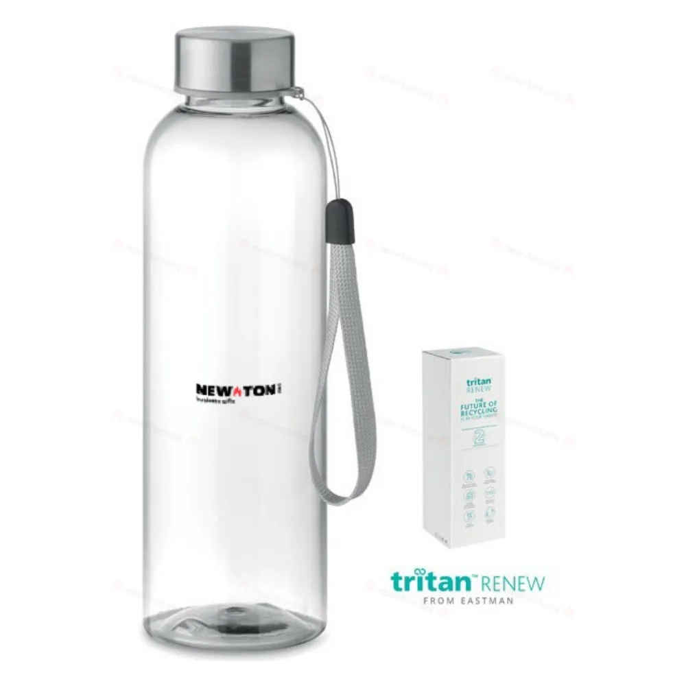 Бутылка для питья из тритана, не содержащего BPA, с крышкой из нержавеющей стали. Герметична. Емкость 500 мл. Этот продукт на 50% состоит из переаботанных отходов пластика с использованием сертификата ISCC.