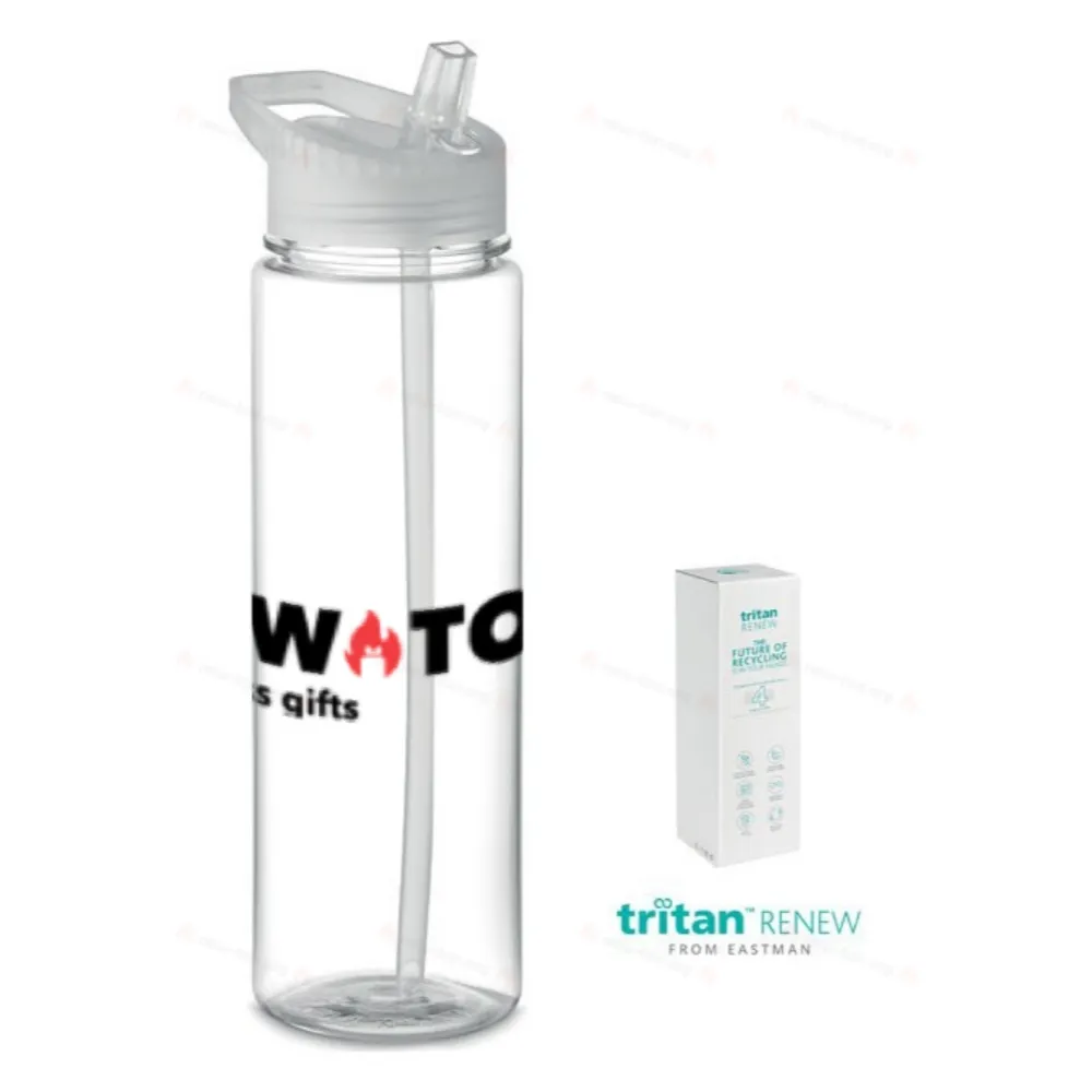 Бутылка для питья из тритана, не содержащего BPA, со встроенной соломинкой из полипропилена. Герметична. Емкость: 650 мл. Этот продукт на 50% состоит из переаботанных отходов пластика с использованием сертификата ISCC