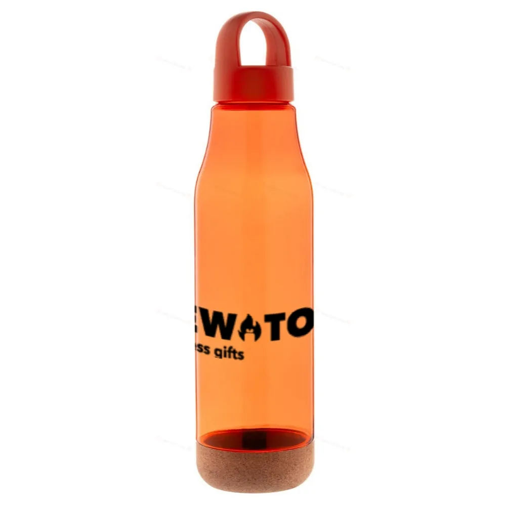 Бутылка из переработанного пластика с натуральным корковым дном и крышкой для переноски из пластика PP. 720 мл.