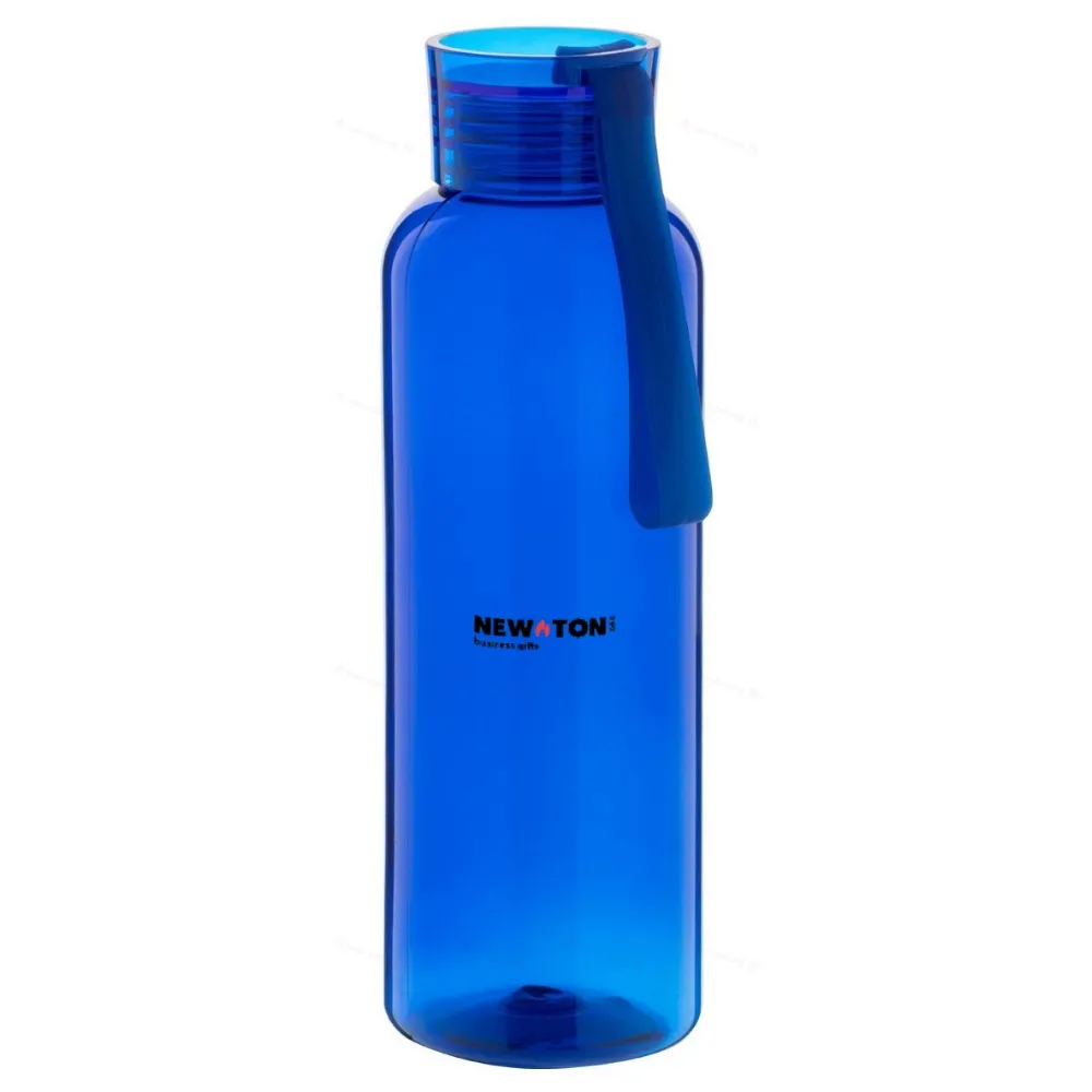 Бутылка из переработанного пластика с крышкой подходящего цвета и силиконовым ремешком для переноски, 500 мл.