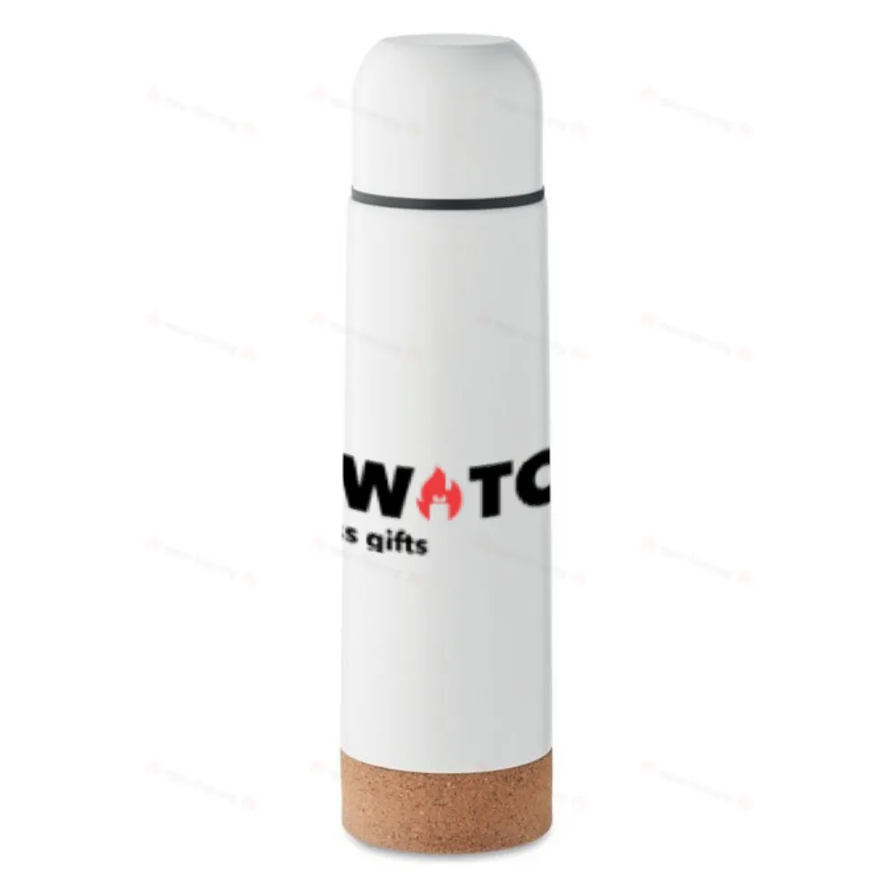 Двустенный термос с вакуумной изоляцией из переработанной нержавеющей стали с пробковым дном. Герметичен. Объем: 500 мл. (90% переработанной нержавеющей стали и 10% нержавеющей стали).