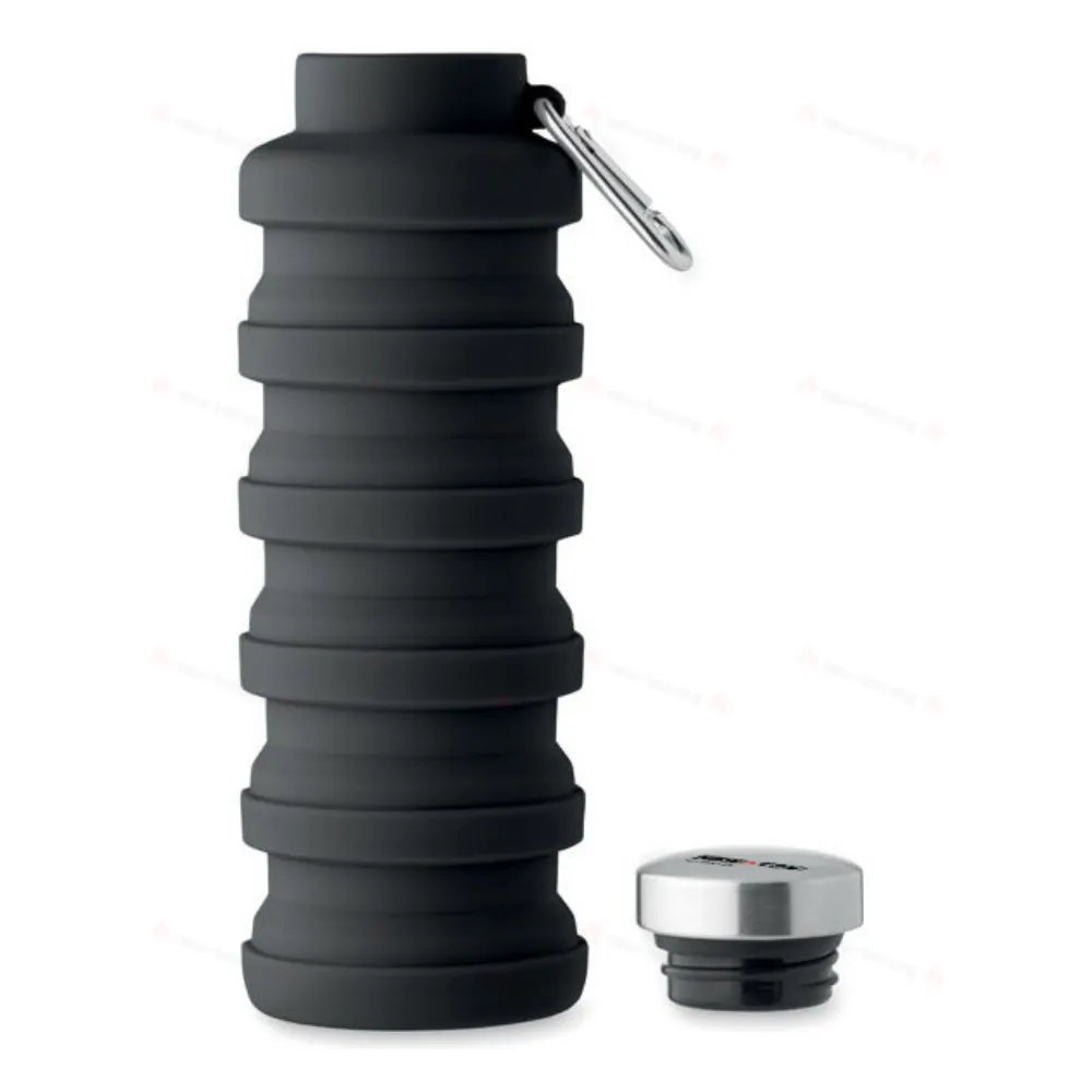 Складная силиконовая бутылка с крышкой из нержавеющей стали и алюминиевым карабином. Карабин не предназначен для альпинизма (непрофессиональное использование). Объем: 500 мл.