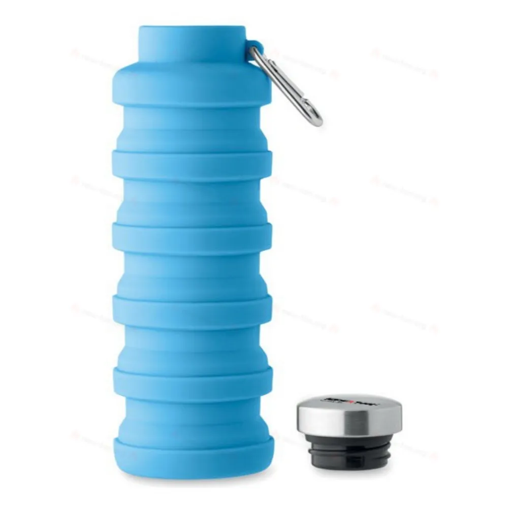 Складная силиконовая бутылка с крышкой из нержавеющей стали и алюминиевым карабином. Карабин не предназначен для альпинизма (непрофессиональное использование). Объем: 500 мл.