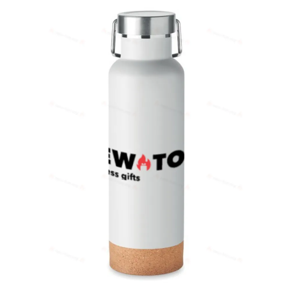 Термос с двойными стенками из переработанной нержавеющей стали 90% и 10% нержавеющей стали, крышкой с ручкой для переноски и пробковым основанием. Герметичен. Объем: 500 мл.