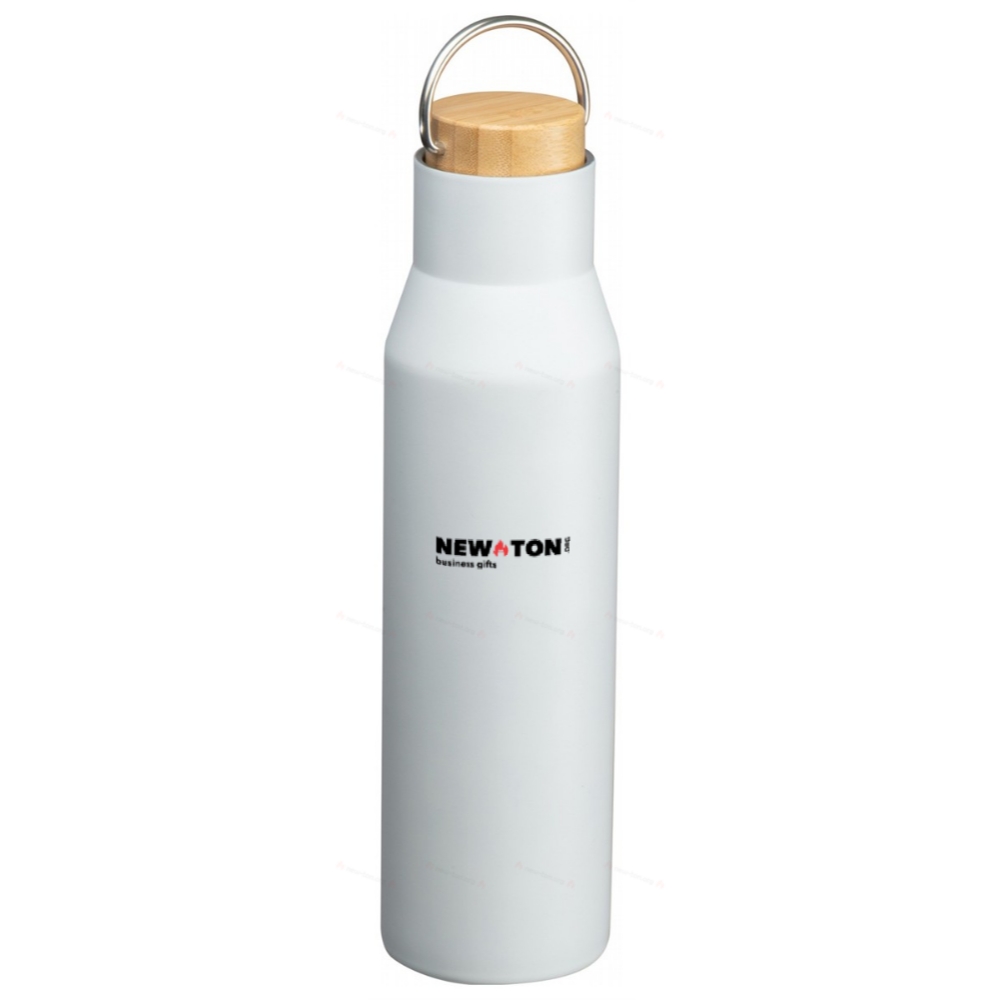 Бутылка для питья из переработанной нержавеющей стали с вакуумной изоляцией, бамбуковой крышкой с ручкой и объемом 550 мл.
