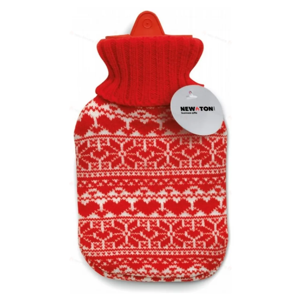 Пластиковая грелка, в вязаном чехле со снежинками, удерживает тепло горячей воды. Объем 310 мл.