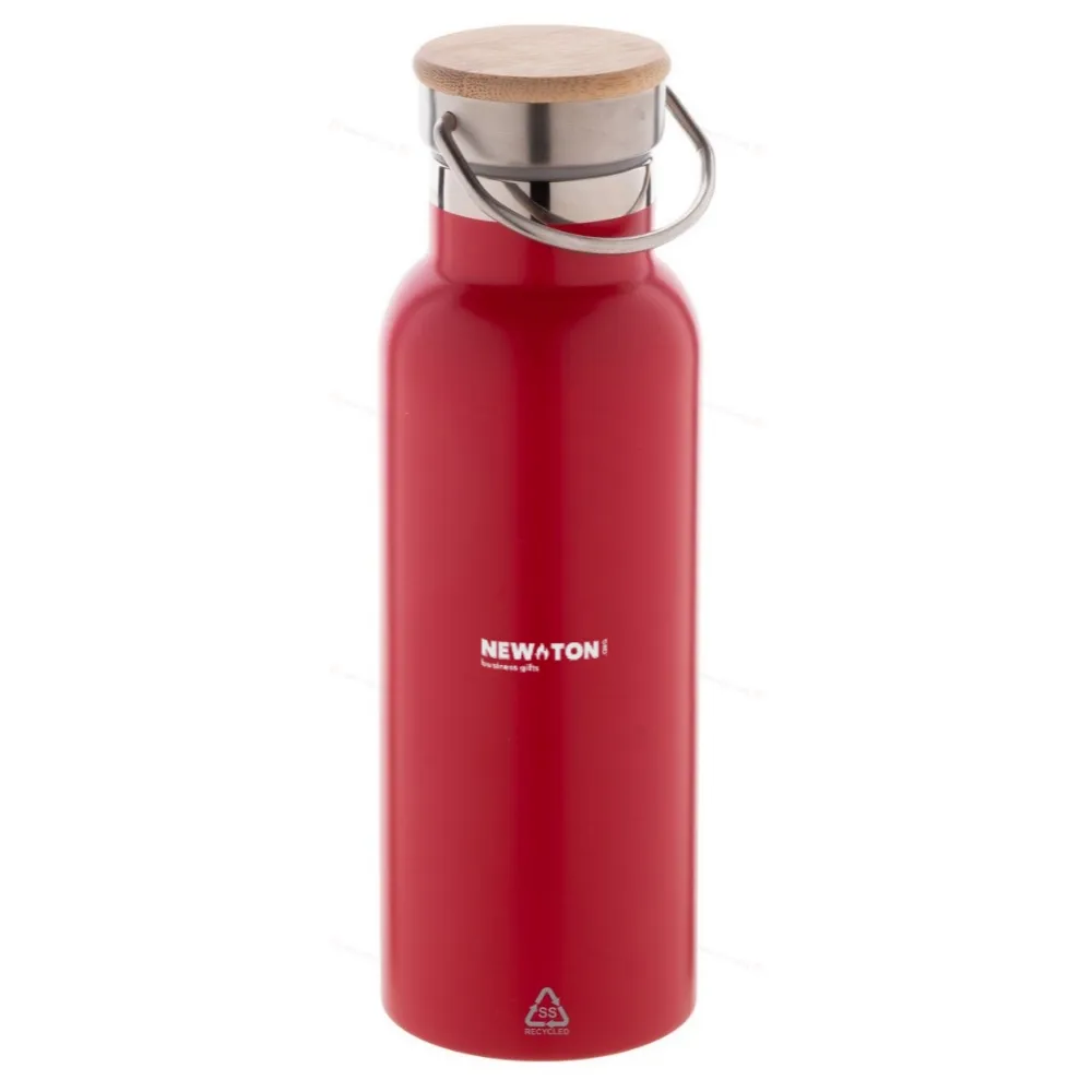 Бутылка из переработанной нержавеющей стали с двойной стенкой, вакуумно изолированная, с крышкой из бамбука для переноски. Объем 500 мл.