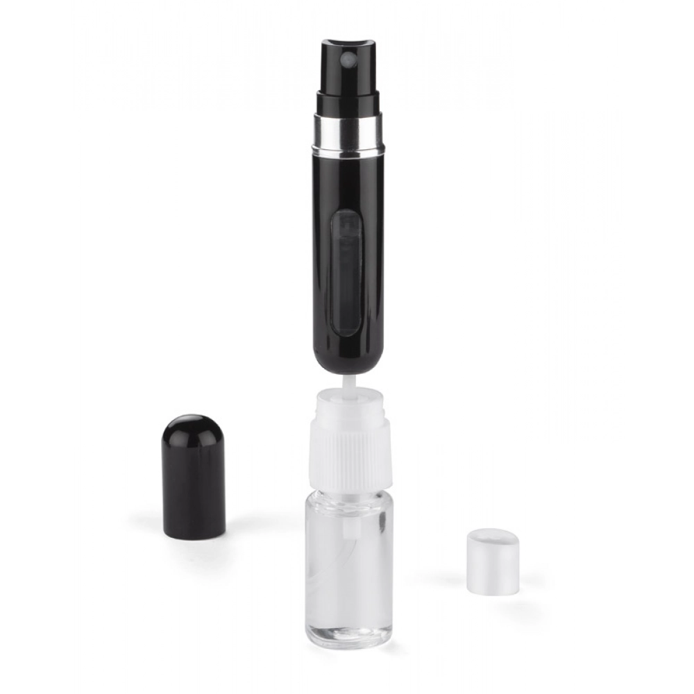Мини-флакон для духов — это аксессуар, который идеально подходит для путешествий и повседневного использования. Вы можете легко и быстро наполнить флакон вашими любимыми духами (или дезинфицирующим средством). Просто поместите нижнюю часть флакона на распылитель выбранной жидкости и аккуратным нажатием заполните его. Объем флакона составляет 5 мл.
