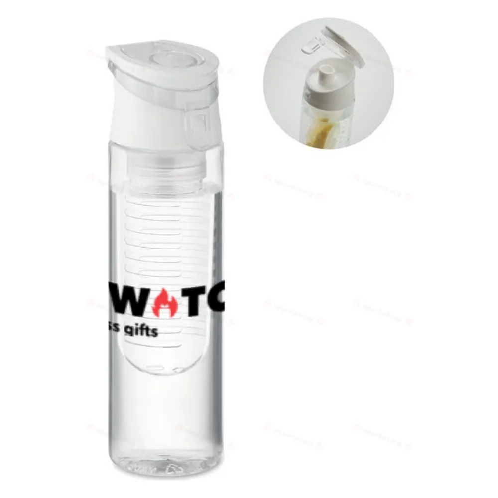 Бутылка для воды из переработанного пластика со съемной насадкой для фруктов, ручкой для переноски и герметичной крышкой. Объем 500 мл.