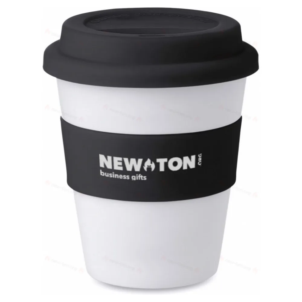Одностенчатый стакан из блестящего белого полипропилена с силиконовой крышкой и ободком. Емкость 350мл. Поскольку это одностенчатое изделие, осторожно - может нагреваться!