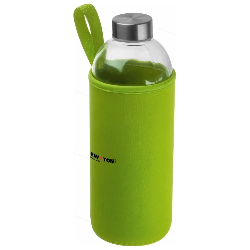 Герметичная бутылка для питья из стекла с неопреновым чехлом, петлей и объемом 1000 мл. Ваш логотип будет напечатан на чехле.