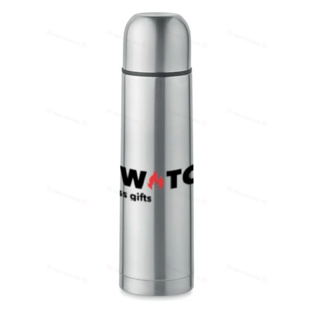 Термос с двойными стенками из переработанной нержавеющей стали 90% и 10% обычной нержавеющей стали. Герметичен. Емкость: 500 мл.