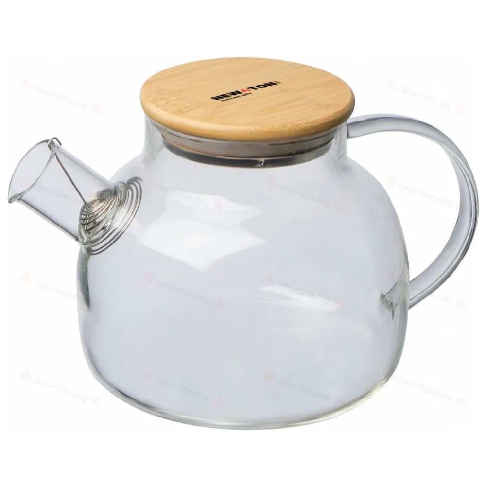 Стеклянный чайник с бамбуковой крышкой, ситом для заливки и емкостью 1000 мл.