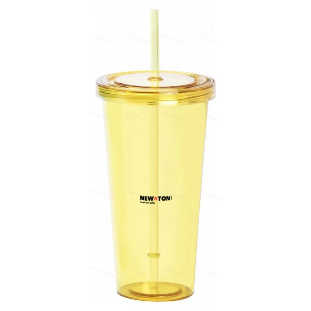 Цветной прозрачный пластиковый стаканчик с трубочкой, 750 мл.